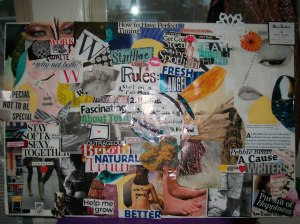 My life Visionboard. It’s more intricate than the other Visionboard, and every space is filled with images I clipped out of magazines.