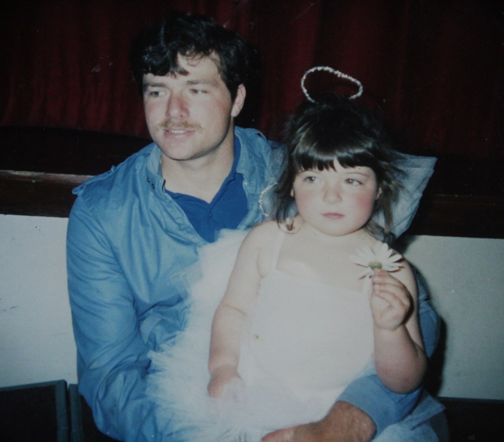 Dad and I after my ballet recital. A single Shasta daisy in my hand. Spring, 1989.